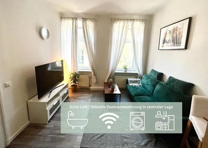 A Staytime - Echo Loft apartman továbbá rendelkezik egy felszerelt konyhával. Az Altnausslitz buszmegálló csak 650 méter távolságra fekszik.